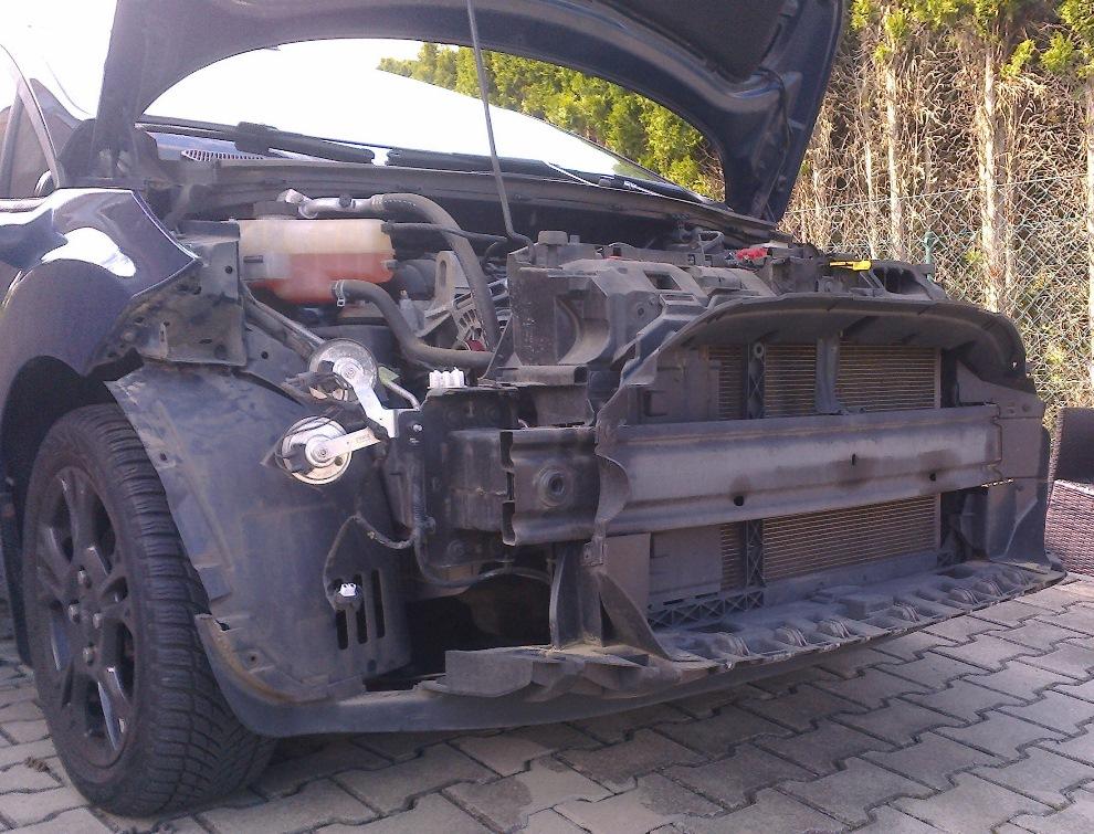 2. sundat naraznik (nad horni mrizkou 4x trn a 2x sroub, v kazdem podbehu 2x sroub, ze spodu 2x trn, v kazdem spojeni naraznik-blatnik 3x hodne spatne pristupny sroub)
