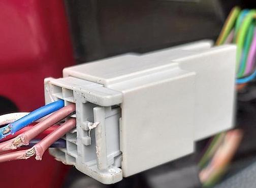 Fotil jsem to, až když jsem už měl konektor v ruce. Původně všechny tři prodřené vodiče byly samozřejmě přimáčknuté přes otvor, přímo na plechu. Jinak umístěno to bylo přesně tak, jak je to na obrázku. Ven z otvoru koukaly vodiče a hned za tím byl umístěn konektor zrcátka.