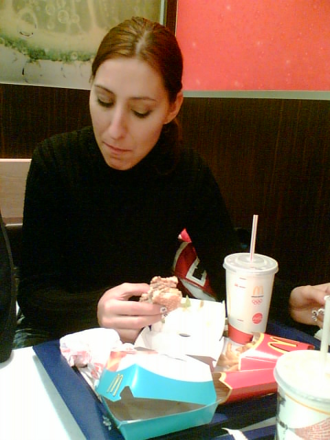 - Dle výrazu v tváři taspy labužnicky vychutnává McCountry poté, co spořádala 3 cheese, McFish a hranolky. Prý jinak moc nejí. :-P
