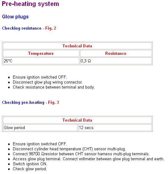 Něco z toho přeložím,ale bohužel ne celé.Každopádně žhaviče jsou OK.Jedná se teď už jen o to dostat do nich šťávu.Dneska ráno teplota okolo +5.Měřil sem napětí mezi kostrou a přívodem k žhavičkám.Po otočení klíčem naběhlo(poprvé!!) napětí cca10V.Zhruba po 10ti sec. žhavení odpadlo a seplo se ještě po nastartování.To myslím,že má tak fungovat.I tak prosím,pokud někdo napoví,co ještě ovlivňuje jednotku (teplota vody,vzduchu...?),aby vyhodnotila,že je potřeba žhavit a kde to najdu.Díky