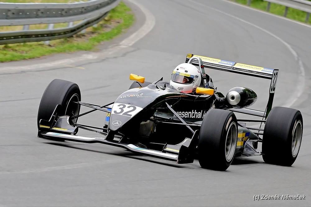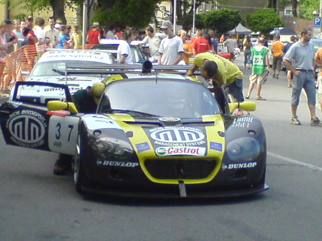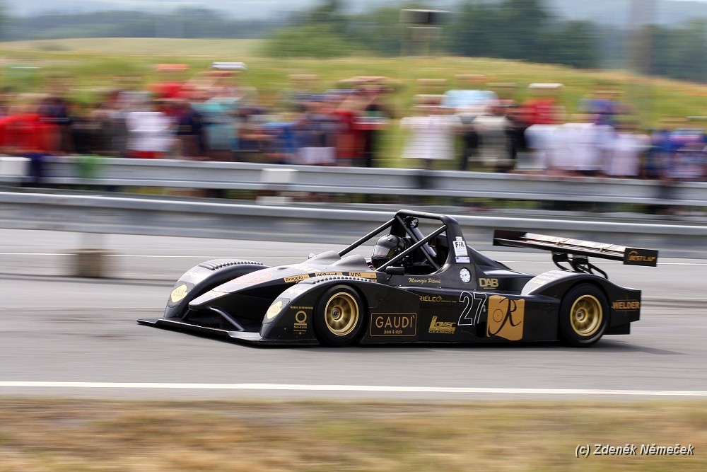 Nicméně se usazujem, dáme si klobásku, jedno pivečko a kocháme se projíždějícími vozy. Po přestávce jsme přešli na jedno místečko za svodidla, vedle nás pořadatel a "zametač", stáli jsme sice cca 2 metry od pásky, ale pořád bezpečně a s nadějí že uděláme pěkné fotky (měli jsme čistý výhled na trať). Pořadatel nic neřííkal, takže pohoda.